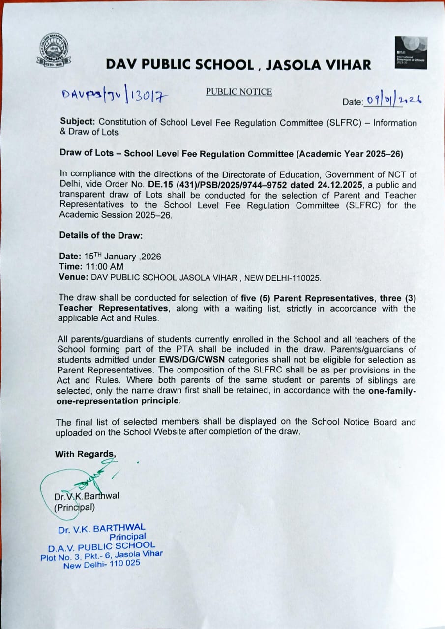DAV Public School, Jasola Vihar Plot No.3, Pocket-6, NEW DELHI -110025 School Code: 25225 Affiliation Number: 2730617 Telephone No. : 011 35551969, 011 35551989 E-mail : [email protected]